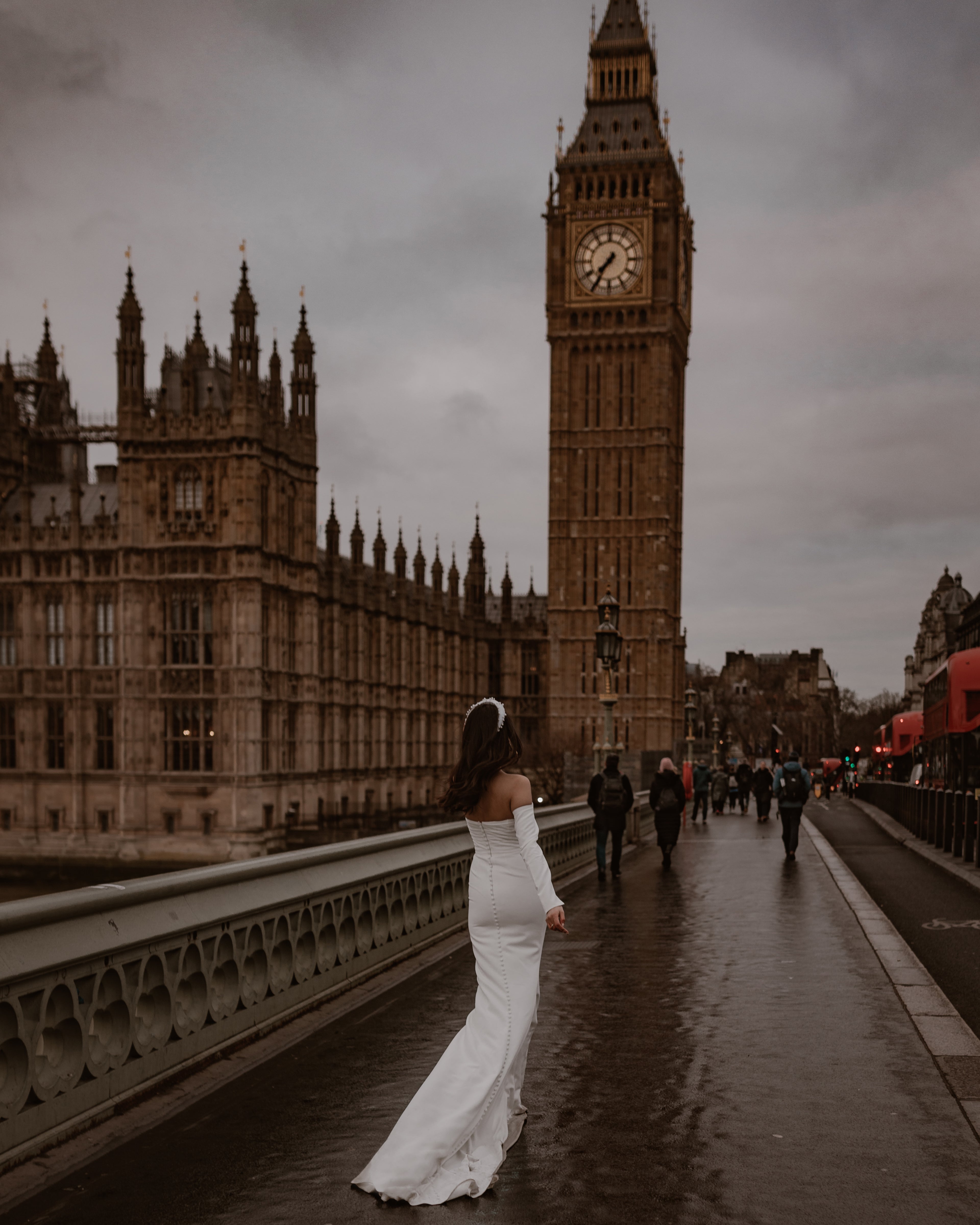 Winter features in demand, long, off-the-shoulder crepe sleeves, which have been intricately designed and perfected by our team over time to flatter every bride.